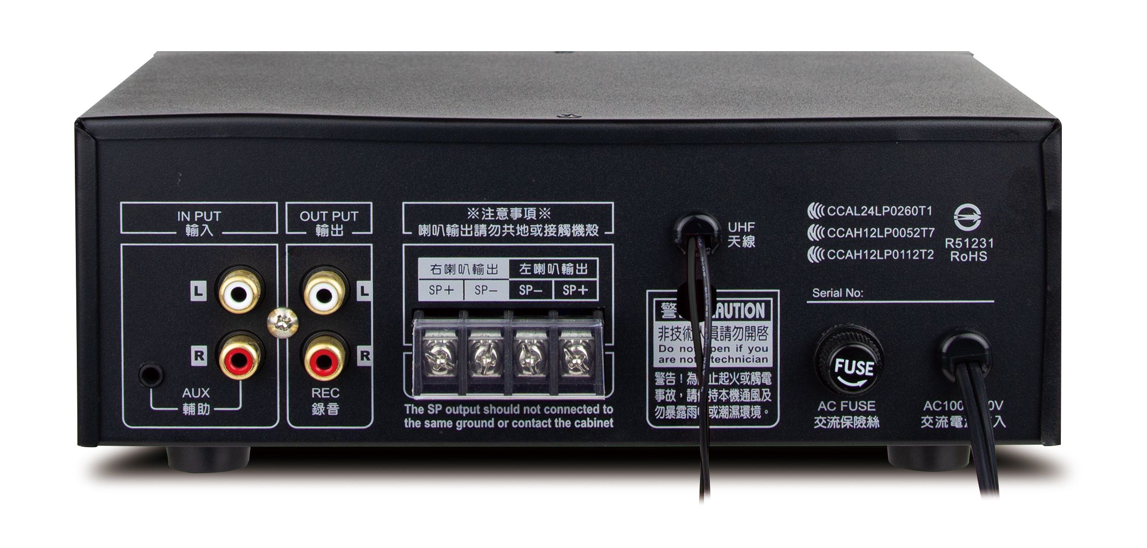 - 內建UHF無線麥克風系統(單頻/雙頻另洽)